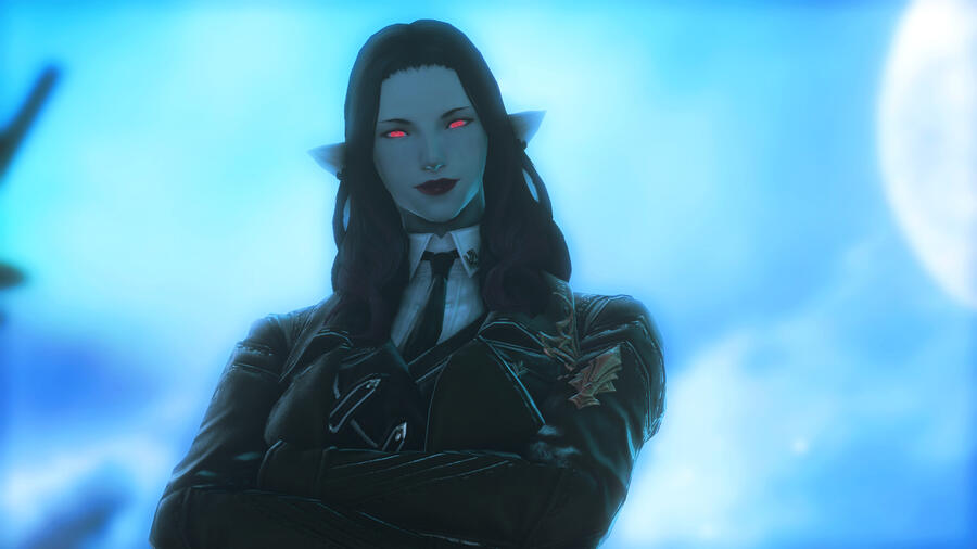 Katerine Karthspire is a former vampire and void hunter. In her early years she was a conscriptian in the Ishgardian military, recognized for her ferocity in battle earning the nickname "Katerine The Red". She would have her first and only child Casmina out of wedlock. Unable to leave her military career, and without a father to help raise her daughter, she left Casmina within the care of her parents, taking on the guise of Casmina's older sister. Katerine would eventually witness first hand the brutal nature of Tepes. She retired from military service and took up the mantle of a vampire and void hunter. One day however, there was an unfortunate incident during one of her final hunts, she was turned into one of the very creatures she swore to destroy. Her change from Elezen to Kindred, saw a new brutality in her methods, creatures of the night came to fear her, and called her the "Kin Slayer." While the natural born denizens of Eorzea avoided her because of her vampiric nature. Living for Epochs without aging a day eventually took their toll on her. She tracked down her own sire, an elder kindred, and in a fierce battle she prevailed in ending their life. Now without purpose she aimlessly wandered about Eorzea, slaying whatever creatures the void spat out into the world. The seeds of self hatred and doubt had already been long implanted in her. She devolved into a spiral of self medication with alcohol, becoming a shade of her former self. She would eventually be approached by a member of a Free Company, who offered her a chance at redemption, and to rid the world of the scourge of Rose Tepes. Finding purpose once again, Katerine immediately joined the Noble Phantasms, offering them her expertise and knowledge of vampires and creatures of the void whenever necessary. She has recently found newfound comfort with her affliction, often times embracing the beast within, to great effect against her own kind.